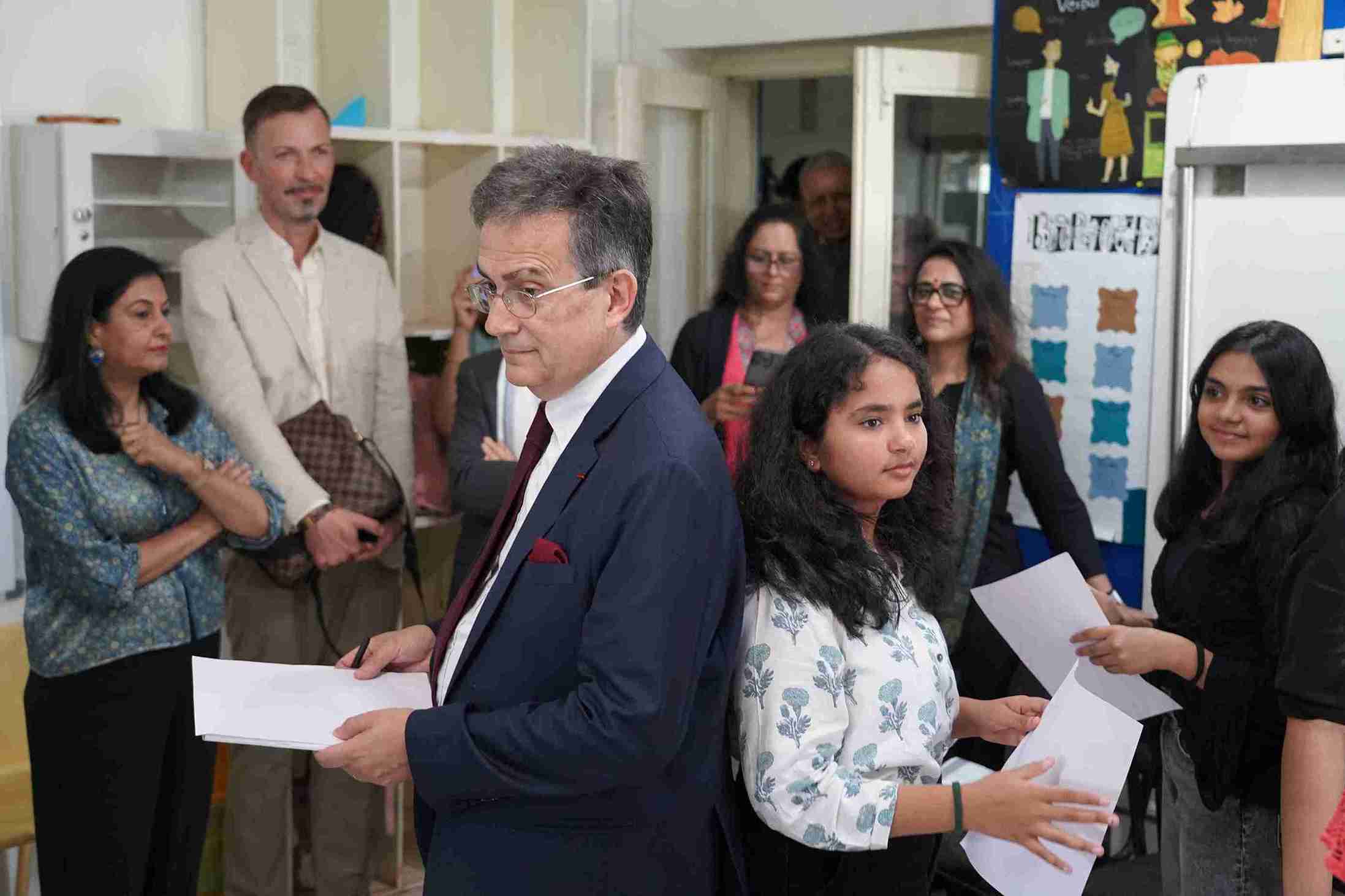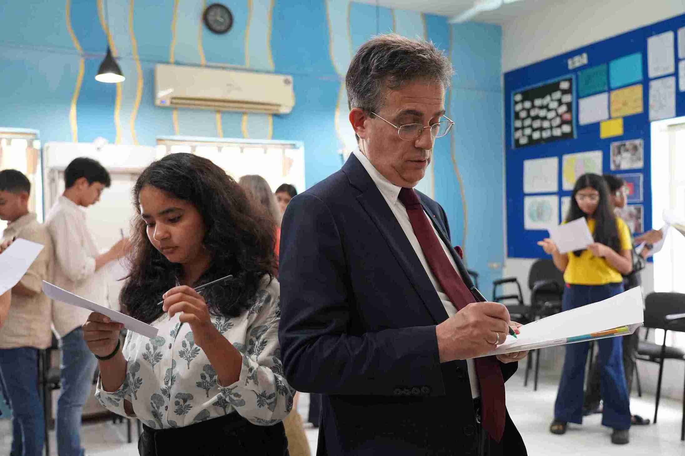 Led by Dr. Pascal Chazot, Head of School, and Dr. Anju Kauwr Chazot, our coordinators and team ensured that our distinguished guests experienced the vibrant spirit of our school. They enjoyed a comprehensive tour of our facilities and were invited to participate in various activities alongside our students, fostering an enriching and memorable experience On this momentous occasion our Honorable Mayor of Ahmedabad, Smt. Pratibha Jain, commended us on our contribution to make learning joyful for our students. We are grateful for the opportunity to share our values and traditions with such notable individuals.”